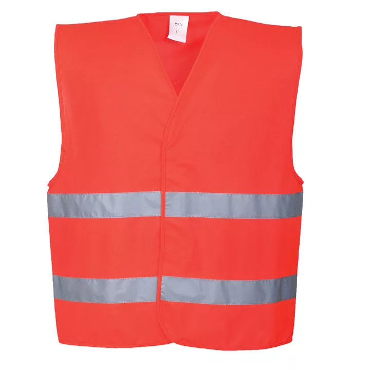 A Portwest C474 jól láthatósági mellény 100% poliészter anyagból készül, elől tépőzárral összezárható. Az alsó részén két fényvisszaverő szalag fut körbe.