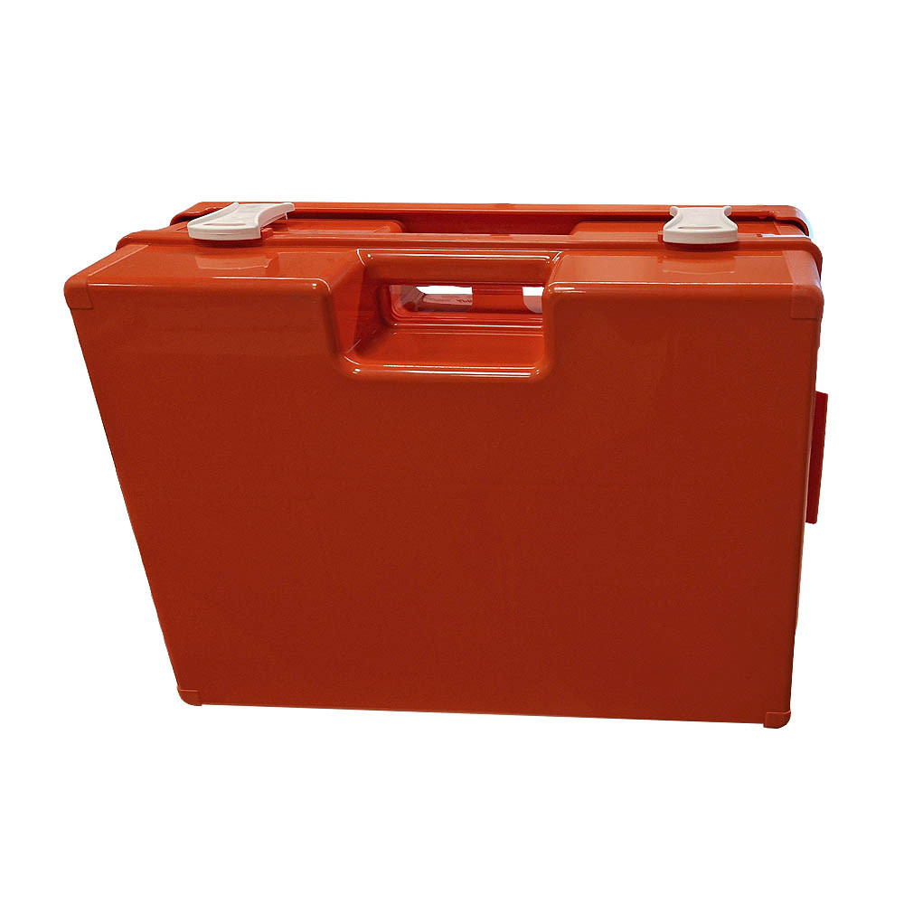 Rendkívül nagy méretű, praktikus rekeszekkel rendelkező műanyag doboz. Kényelmesen elfér benne a legtöbb elemet tartalmazó szabványos elsősegély felszerelés. Külön rekeszeinek köszönhetően a benne lévő kötszereket könnyű átlátni, azok biztosan a helyükön lesznek akkor amikor szükség van rájuk. Kétfelé nyitható, mindkét oldala egyaránt jól használható mélységű rekeszként funkcionál. A közepén 1-1 átlátszó műanyag lemez van. Ez megakadályozza, hogy a benne tárolt dolgok ne hulljanak szét kinyitáskor. Nagyon kemény és strapabíró ABS műanyagból készül. Ennek köszönhetően kivételesen tartós darab.